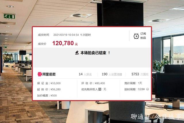 拍卖数据显示,这个四A尾号的移动号码拍卖时有5753人次围观,190人设置了提醒,有14人付定金报名参拍。经过24小时85轮激烈竞价,最终被竞拍者赵先生以最高应价120780元胜出,为起拍价56280元的两倍还要多。